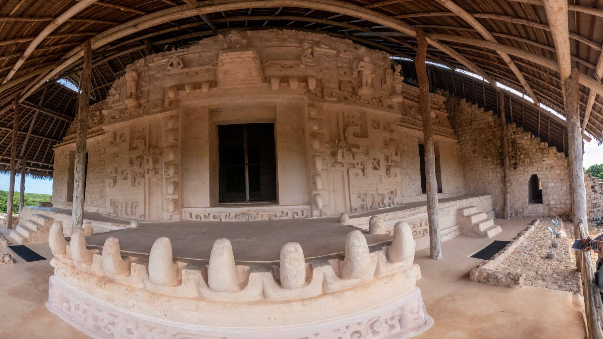 Ek Balam’s stunning architecture will amaze you. Age-old structures such as the ballgame court, the palaces, the oval temple and the main building called the Acropolis will draw you in. The Acropolis holds the tomb of king Ukit Kan Lek Tok and is one of the best preserved structures displaying impressively detailed stucco.